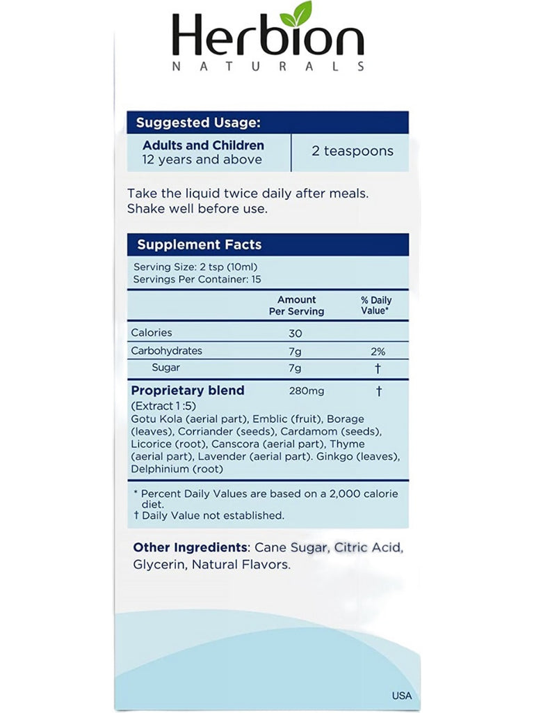 Herbion Memory Support Liquid is made with Ginkgo Biloba and other antioxidant herbs that help reduce anxiety due to common everyday workload and fatigue, improve brain function and absent-mindedness, support mental function, and gently soothe away stress maintaining healthy mood levels.