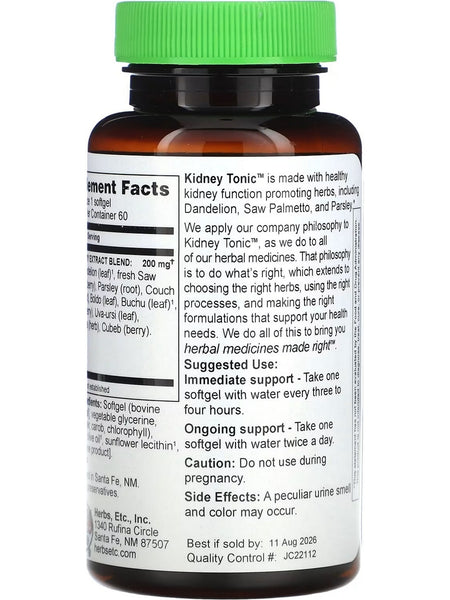 Herbs Etc., Kidney Tonic, 60 Softgels
