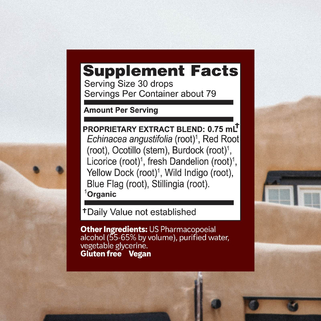 Lymphatonic is made with lymphatic system supporting herbs, including Echinacea angustifolia, Red Root and Ocotillo.
