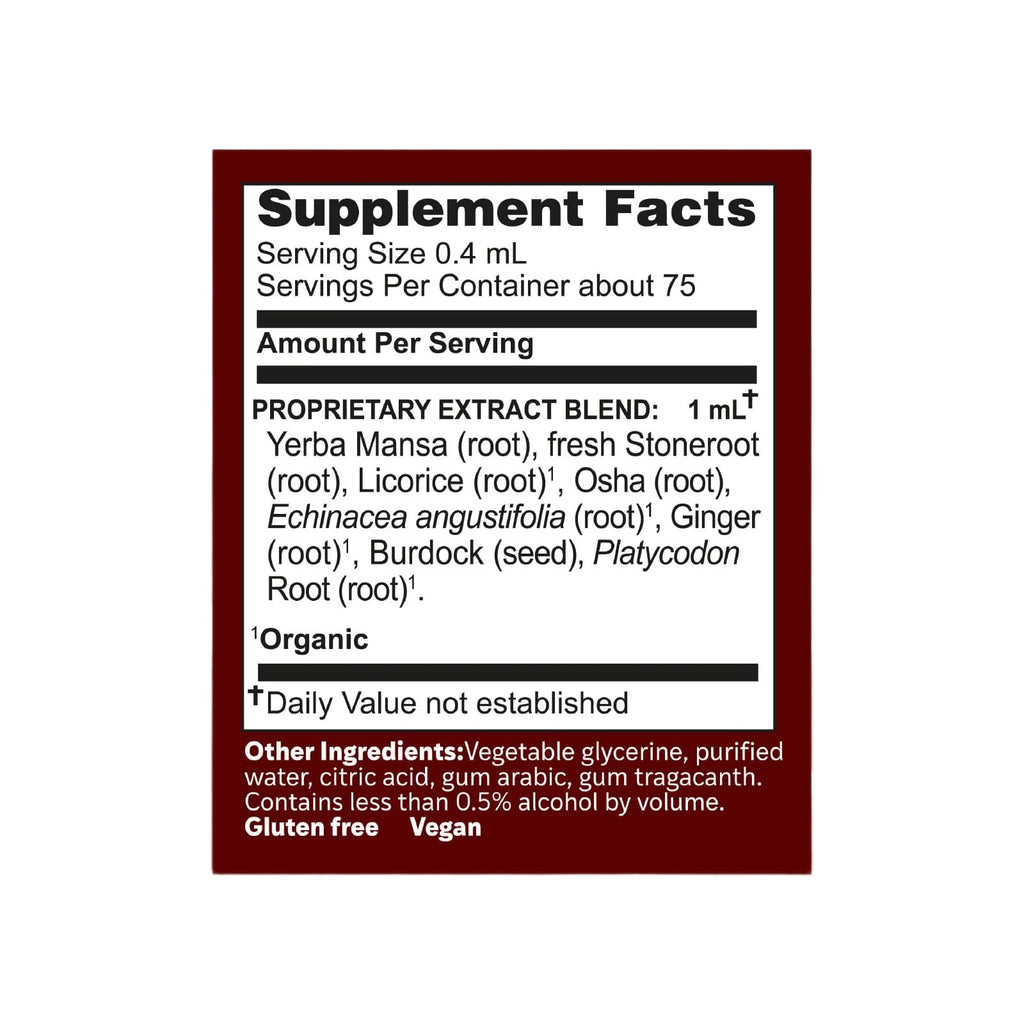 Singer’s Saving Grace is made with throat soothing herbs, including Yerba Mansa, Stoneroot and Licorice.