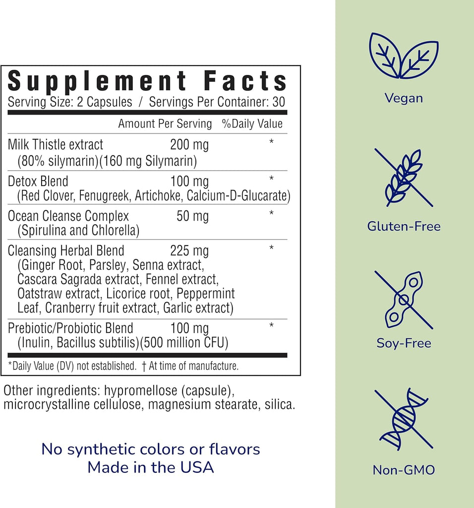 By combining detoxifying actives with ocean algae like spirulina and chlorella, Her Own Cleanse helps support and enhance the body’s natural detoxification process, promoting removal of impurities from your body. We added milk thistle extract to help support your body’s natural detox powerhouse – your liver.