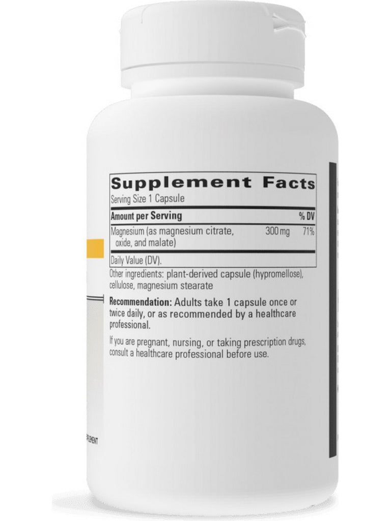 Tri-Magnesium provides 300 mg of elemental magnesium per capsule to support cellular metabolism.