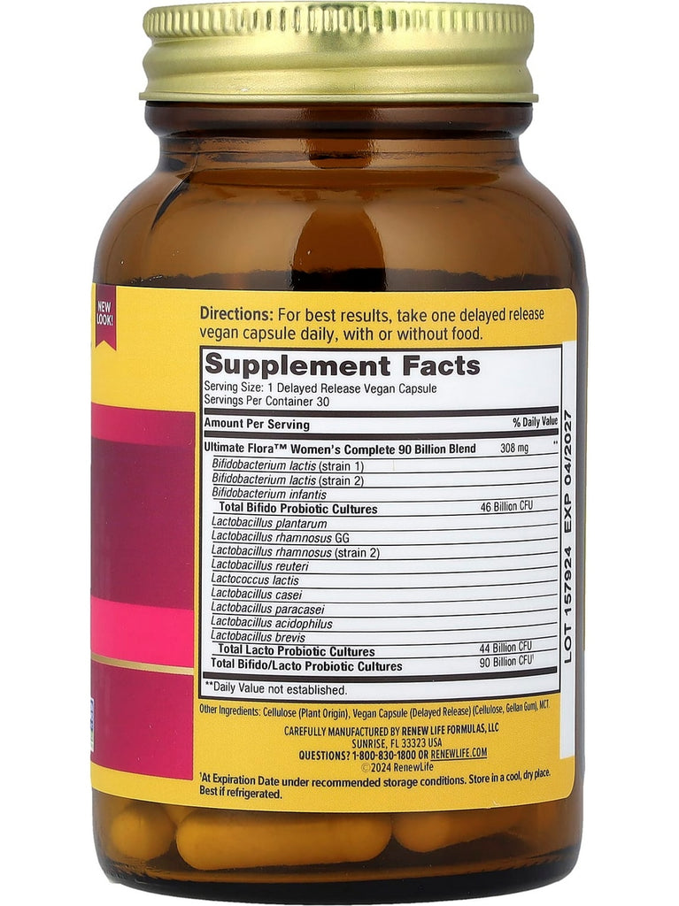 RenewLife, Women's Complete Ultimate Flora Probiotic, 90 Billion CFU, 30 Delayed Release Vegan Capsules