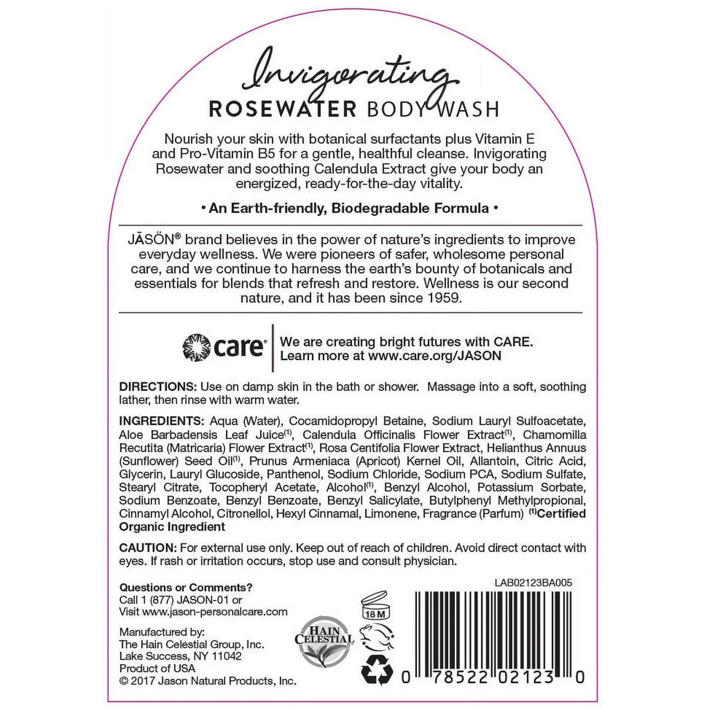 Jason Naturals, Body Wash, Invigorating Rosewater, 30 fl oz