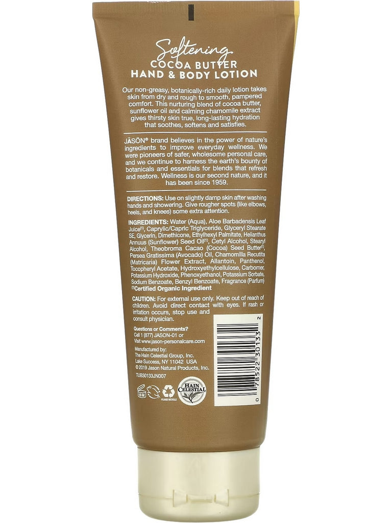 Jason Naturals, Hand and Body Lotion, Softening Cocoa Butter, 8 oz