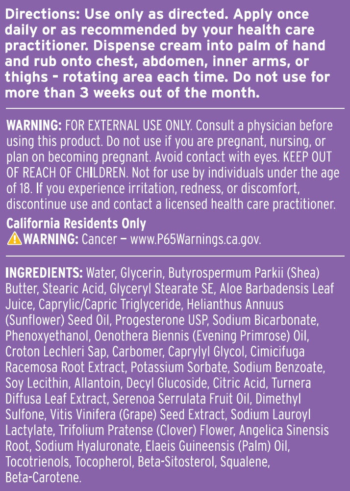 Progesterone derived and converted from wild yam and plant estrogens come together in a cream designed to support a woman’s balance.