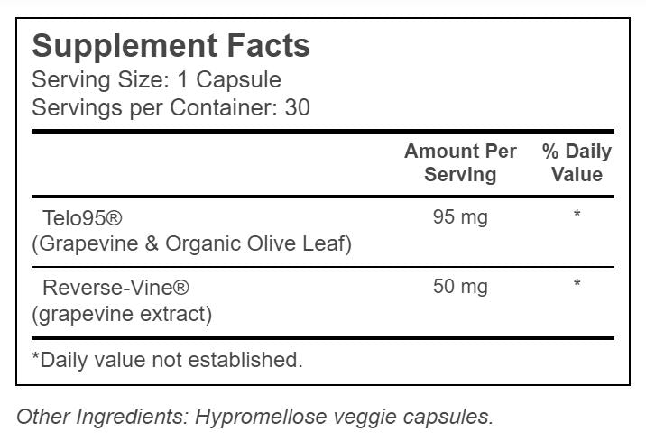 Telos95 is a clinically proven anti-aging telomere lengthening & lowering cellular age supplement consisting of an advanced proprietary plant-based blend of highly therapeutic polyphenols, that are naturally isolated from grapevine and organic olive leaf. These phytochemical compounds fight free radicals to maintain the health of the cells from becoming Senescence Cells (death of cells). Cell Senescence causes premature aging and eventually diseases. Promote telomere health, cellular longevity, and protects against Cell Senescence.