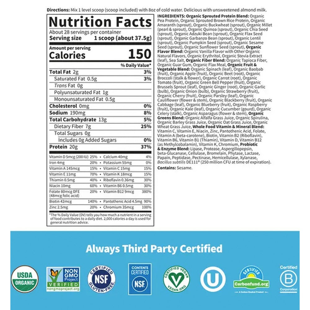Garden of Life, Raw Organics, Meal, Vanilla, 37.04 oz