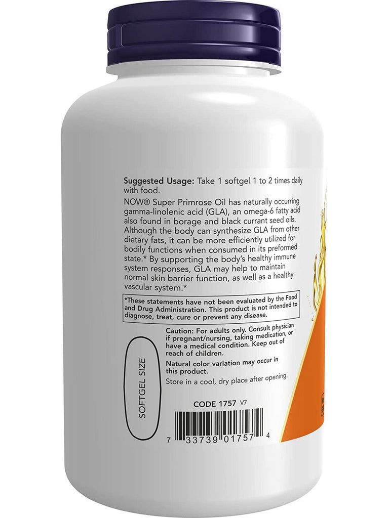 NOW® Super Primrose Oil has naturally occurring gamma linolenic acid (GLA), an Omega-6 fatty acid also found in borage and black currant seed oils. Although the body can synthesize GLA from other dietary fats, it can be more efficiently utilized for bodily functions when consumed in its preformed state. By supporting the body’s healthy immune system responses, GLA may help to maintain normal skin barrier function, as well as a healthy vascular system.