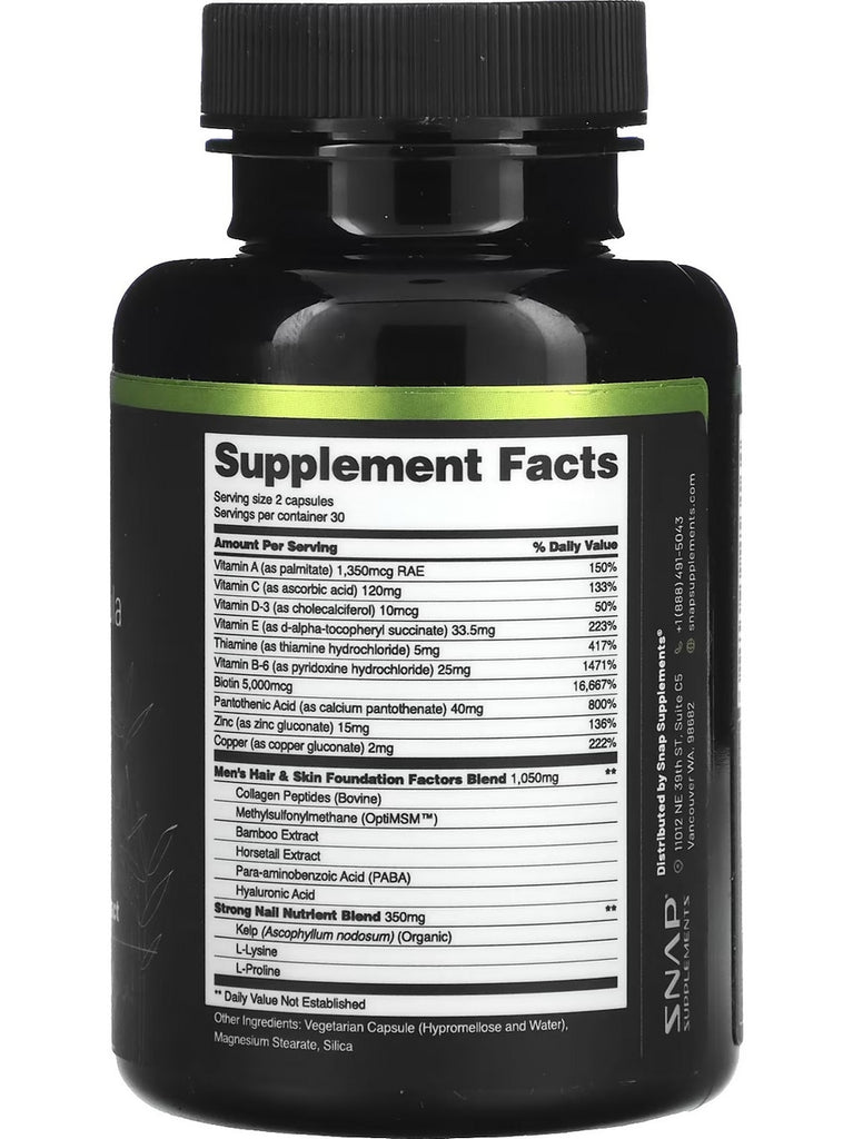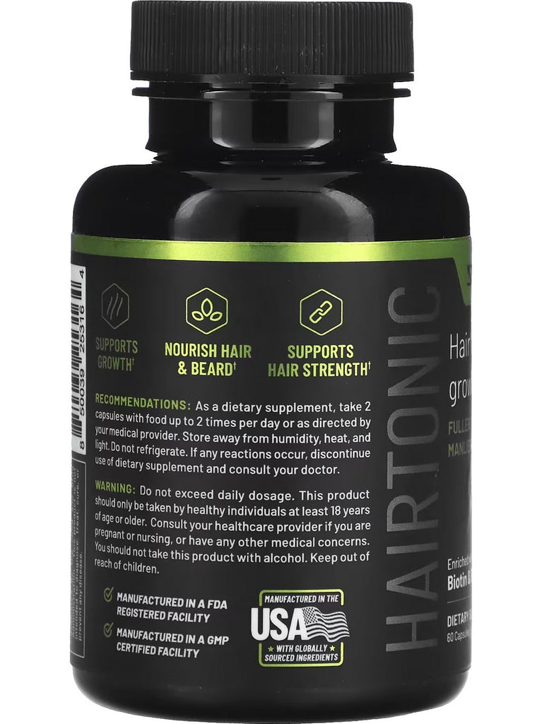 Snap Supplements, Hairtonic Hair and Beard Growth Formula, Biotin and Bamboo Extract, 60 Capsules