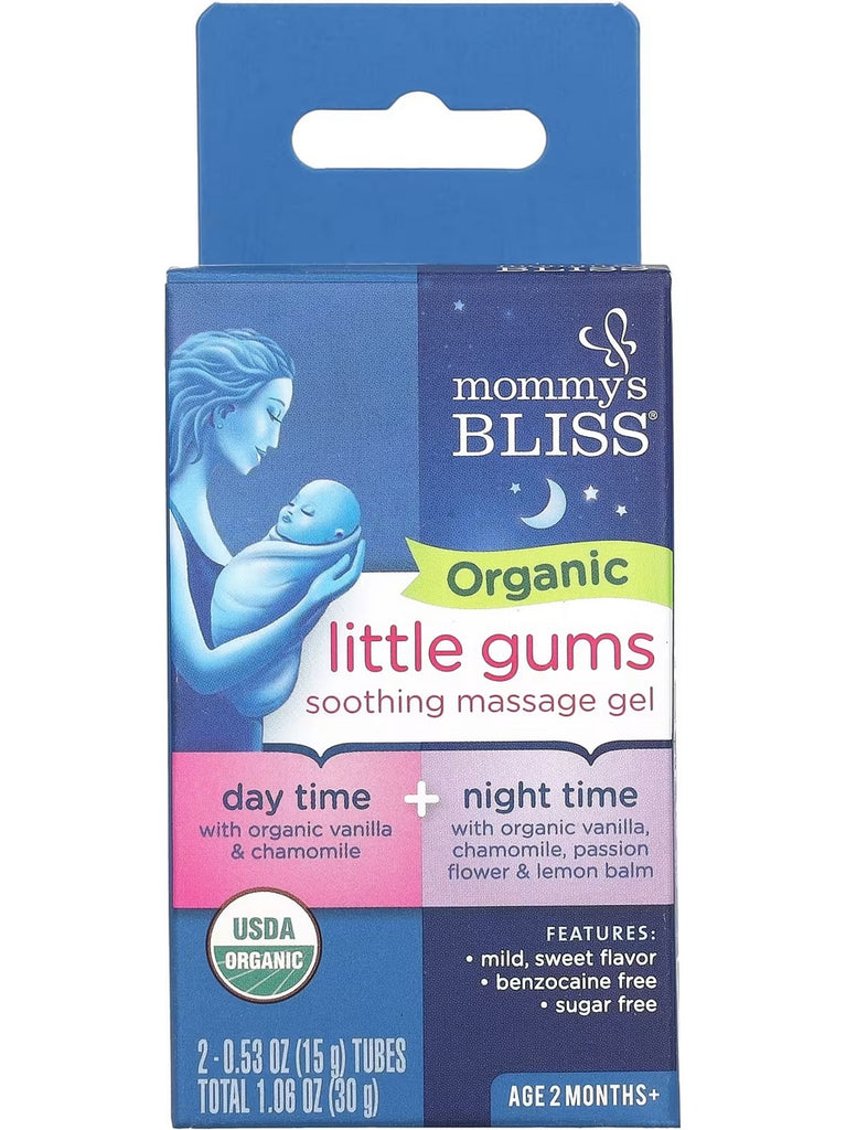 Mommy's Bliss, Organic Little Gums Soothing Massage Gel, Day Time + Night Time, Age 2 Months +, 2 Tubes, 0.53 oz each