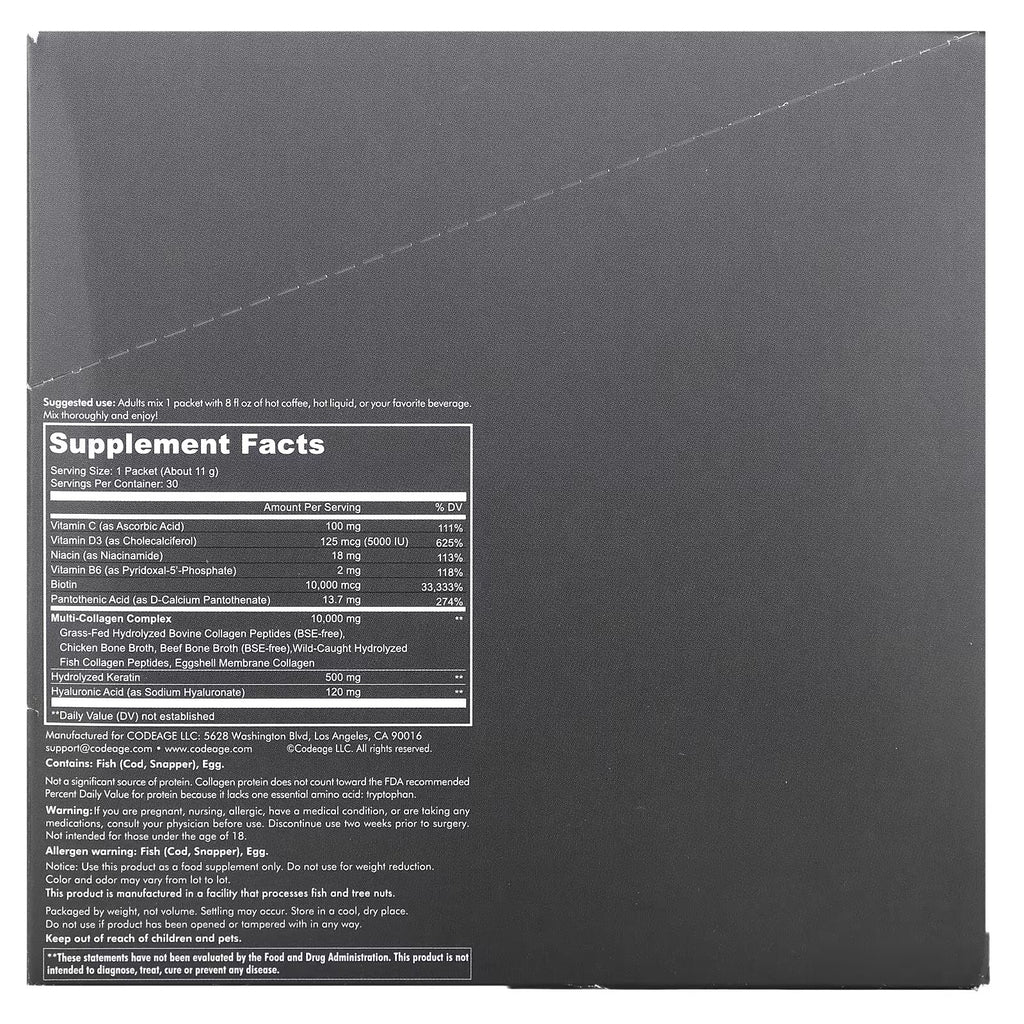 • Codeage Multi Collagen Platinum stick packs provide a premium and convenient way to incorporate collagen into your daily routine with a unique blend of 5 types of collagen peptides from 5 different food sources, grass-fed collagen, wild-caught marine collagen, and 18 amino acids all-in-one.