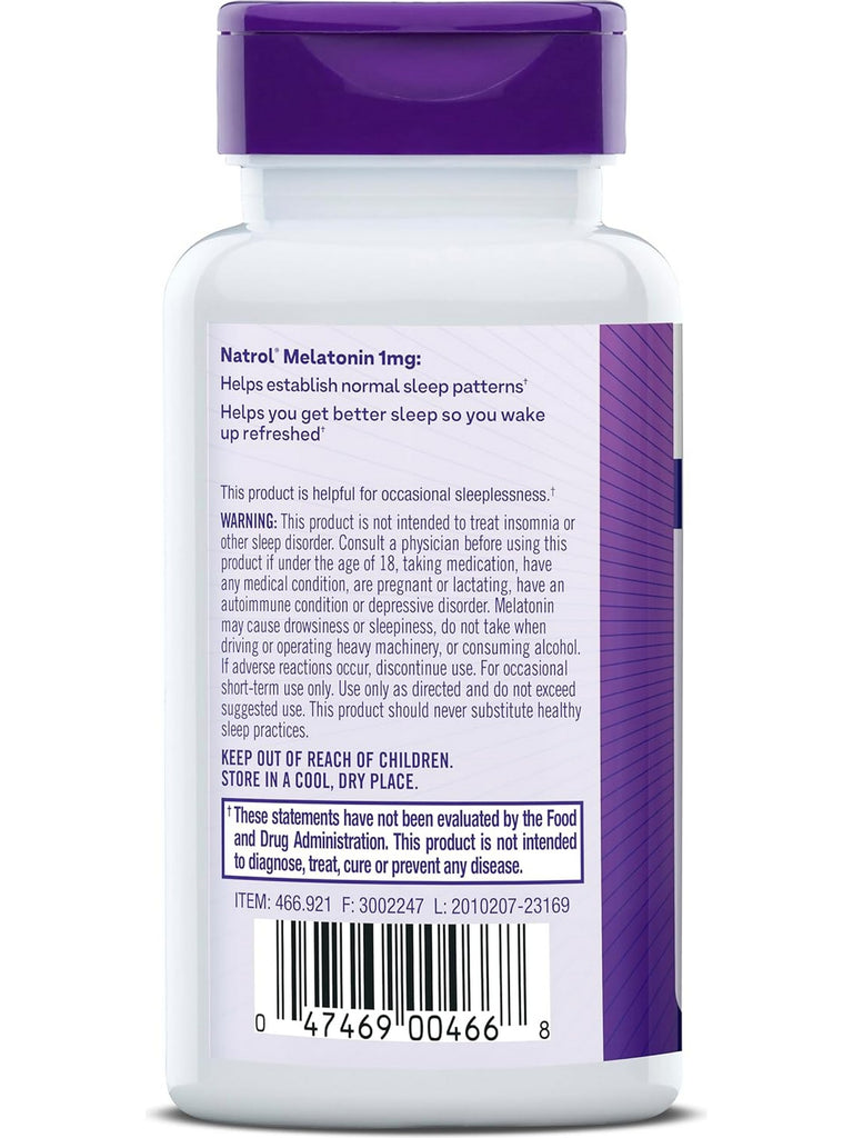 Natrol Melatonin, the #1 melatonin brand in America, is a nighttime sleep aid that assists with occasional sleeplessness. It helps to establish normal sleep patterns to give you a more restful, relaxing sleep and in turn, better overall health.