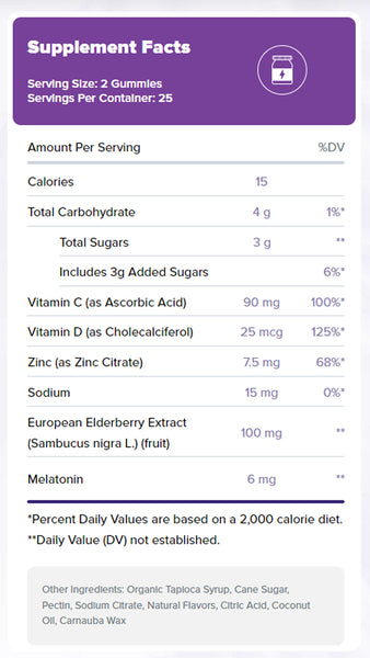 Natrol Sleep+ Immune Health Gummies offer a powerful blend of Melatonin, Elderberry, Vitamins C and D and Zinc to support immune health and provide a restful night's sleep.