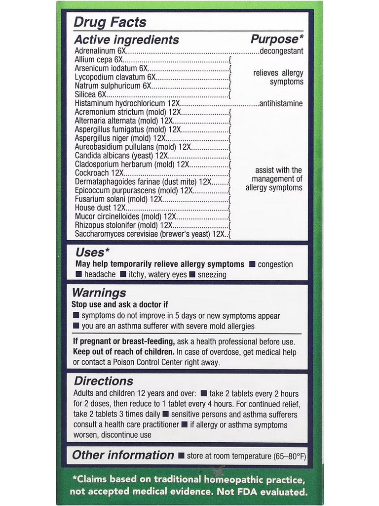 Homeopathic treatment of allergy symptoms caused by exposure to molds, yeasts and dust. Product was formerly named Indoor Allergy.
