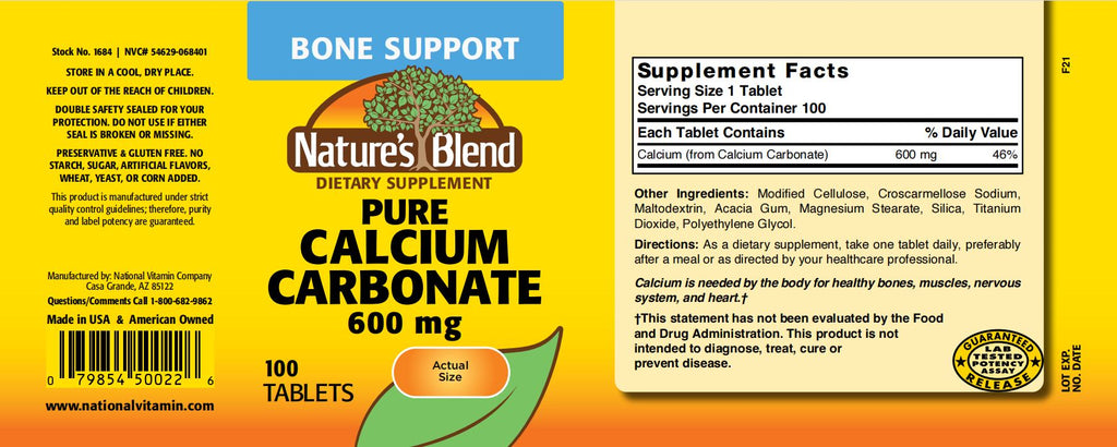 Nature's Blend, Pure Calcium Carbonate, 600 mg, 100 Tablets