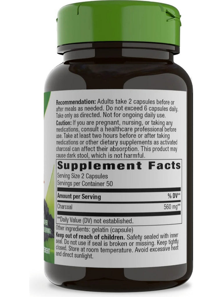 Nature's Way Activated Charcoal binds unwanted materials and gas in the digestive tract. Charcoal capsules contain 560 mg of charcoal per serving and are easy to take – no messy powder required.
