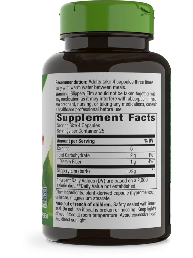 The bark in this product is sourced from slippery elm trees, which are native to North America and can grow to be over 200 years old. They've been used for centuries by Native Americans. We partner with suppliers who harvest the bark so the trees can grow back naturally, rather than stripping the bark, which can damage the trees and limit their longevity. Nature's Way Slippery Elm Bark has traditionally been used to help soothe the gastrointestinal tract.