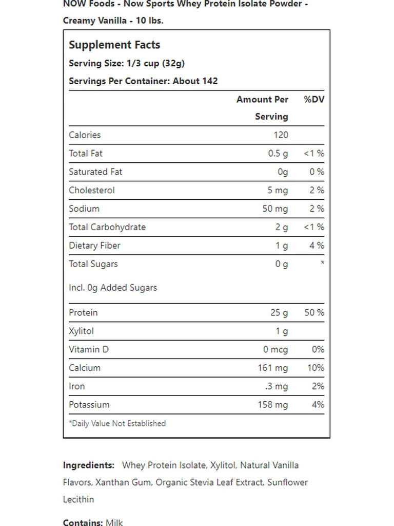 NOW Foods, Whey Protein Isolate, Creamy Vanilla Powder, 10 lbs