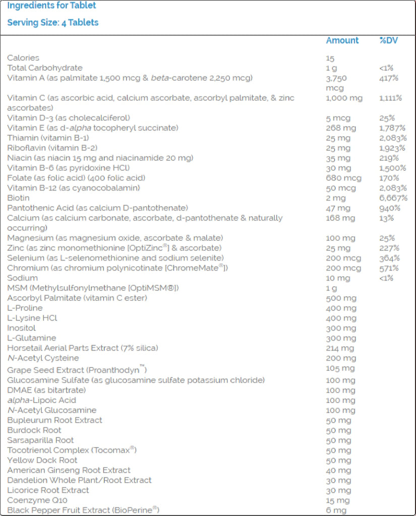 SKIN ETERNAL® PLUS™ is a Bio-Aligned Formula® that supports healthy, supple skin. Its ingredients, including ascorbyl palmitate, alpha-lipoic acid, DMAE, vitamin E, and grape seed extract, address the primary body systems involved in skin health. These include cell membrane integrity, connective tissue support, cell renewal, muscle and nerve function, stress response, and antioxidant defense.