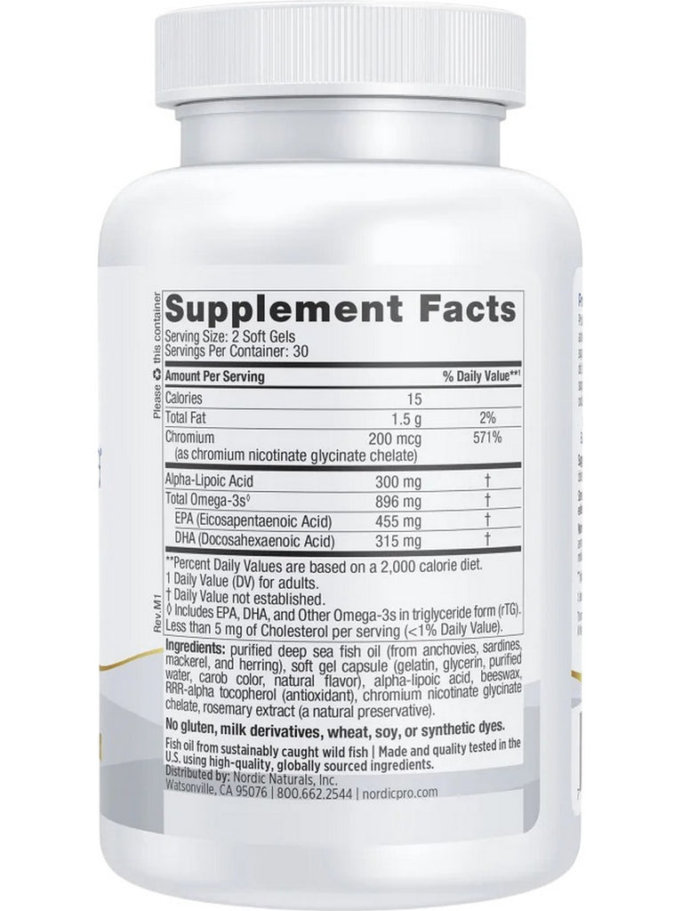- Concentrated omega-3s with alpha-lipoic acid and chromium