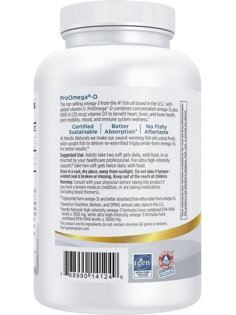 ProOmega®-D provides exceptionally high levels of the omega-3 essential fatty acids EPA and DHA, in addition to 1000 I.U. of vitamin D3, in one delicious serving. Vitamin D3 (or cholecalciferol) is the natural form of vitamin D produced by the body, and is better absorbed and utilized than other forms.