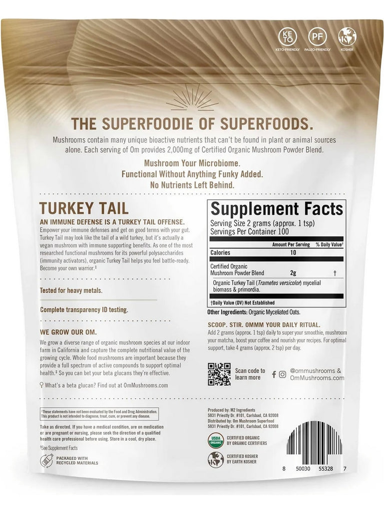 Om Mushroom Superfood, Turkey Tail Certified Organic Mushroom Powder, 7.05 oz