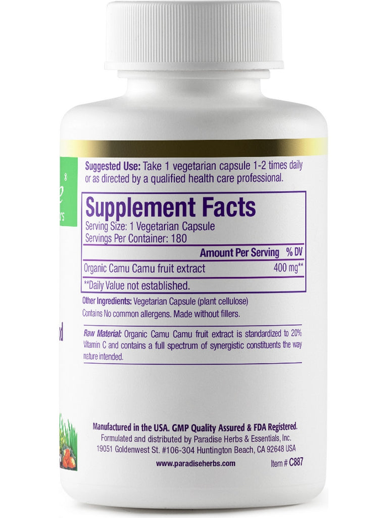 Paradise Herbs, Camu Camu, Organic, 180 vegetarian capsules