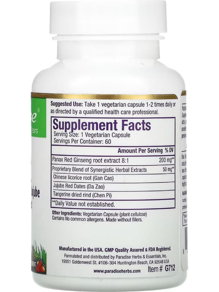 Paradise Herbs, Ginseng +, 60 vegetarian capsules
