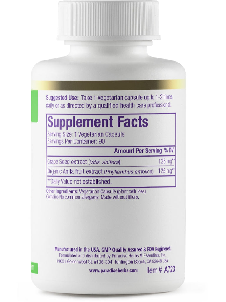 Paradise Herbs, Grape Seed Extract with Amla, 90 vegetarian capsules