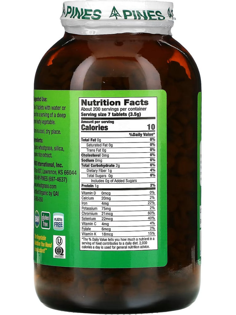 PINES Wheatgrass Tablets are an incredibly convenient, surprisingly economical way to make sure you eat green vegetables every day!
