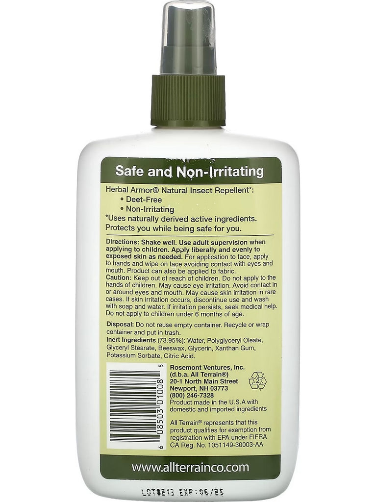 All Terrain, Herbal Armor, Natural Insect Repellent, Deet-Free Pump Spray, Family Size, 8 fl oz