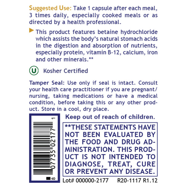 Formulated to assist digestion, this formula delivers a powerful source of acid to help ensure food is digested and absorbed. As acid production can decline with age or circumstances, this product's got you covered so digestion remains strong.