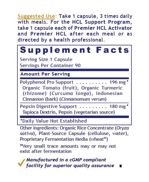Take 1 capsule, 3 times daily with meals or as directed by your healthcare practitioner. For the HCL Support Program, take 1 capsule each of Premier HCL Activator and Premier HCL after each meal or as directed by your healthcare practitioner.
