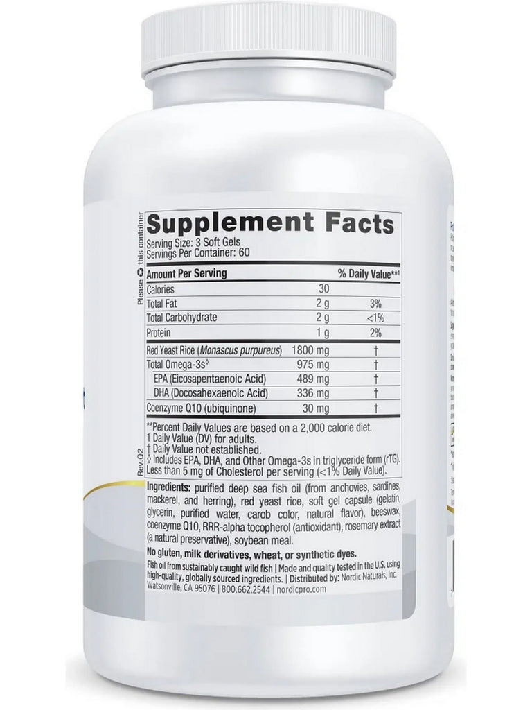EPA and DHA work in synergy with the powerful lipid-metabolizing action of red yeast rice (a natural red-pigmented yeast grown on rice) and CoQ10 to promote the metabolism of dietary fat and cholesterol, support healthy blood vessel function, and provide antioxidant protection from damaging free radicals.