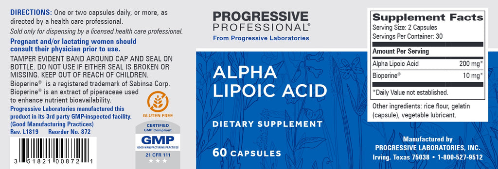 Progressive Labs, Alpha Lipoic Acid, 60 Capsules