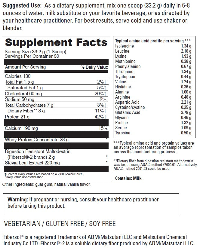 As a dietary supplement, mix one scoop (33.2 g) daily in 6-8 ounces of water, milk substitute or your favorite beverage, or use as directed by your healthcare practitioner. For best results, serve cold and use a shaker or blender.