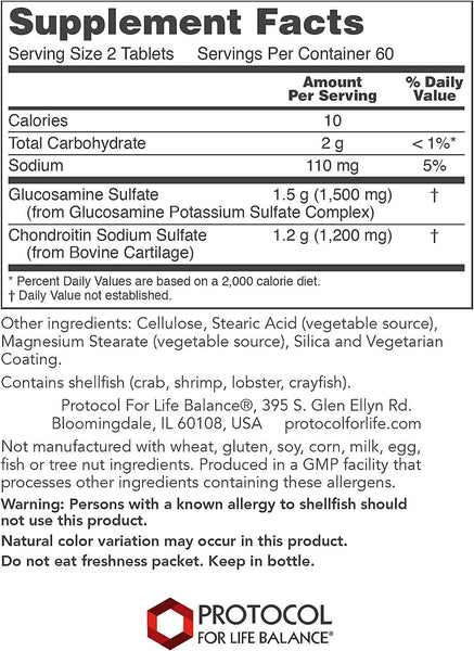 Protocol For Life Balance, Glucosamine & Chondroitin, 120 Tablets