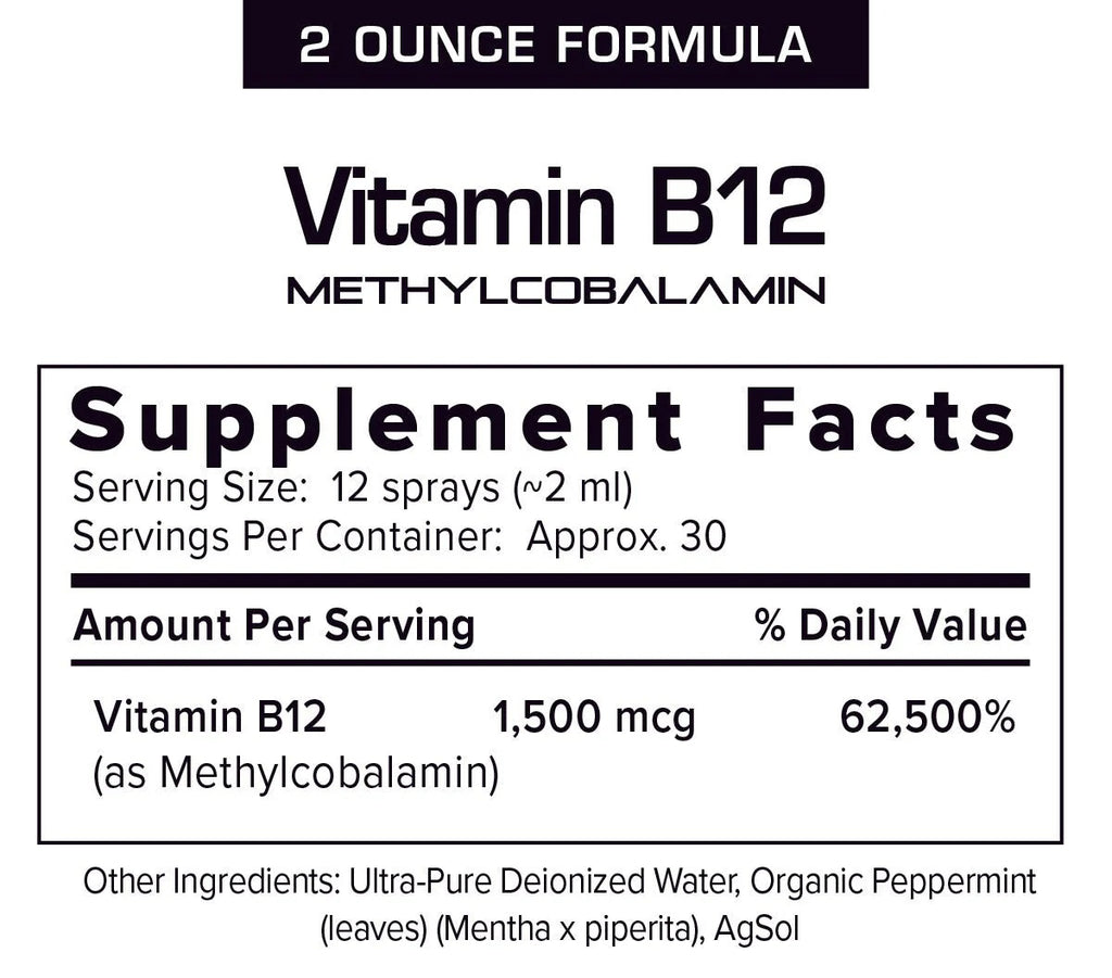 Vitamin B12 (as Methylcobalamin) 1,500 mcg 62,500% (% Daily Value)