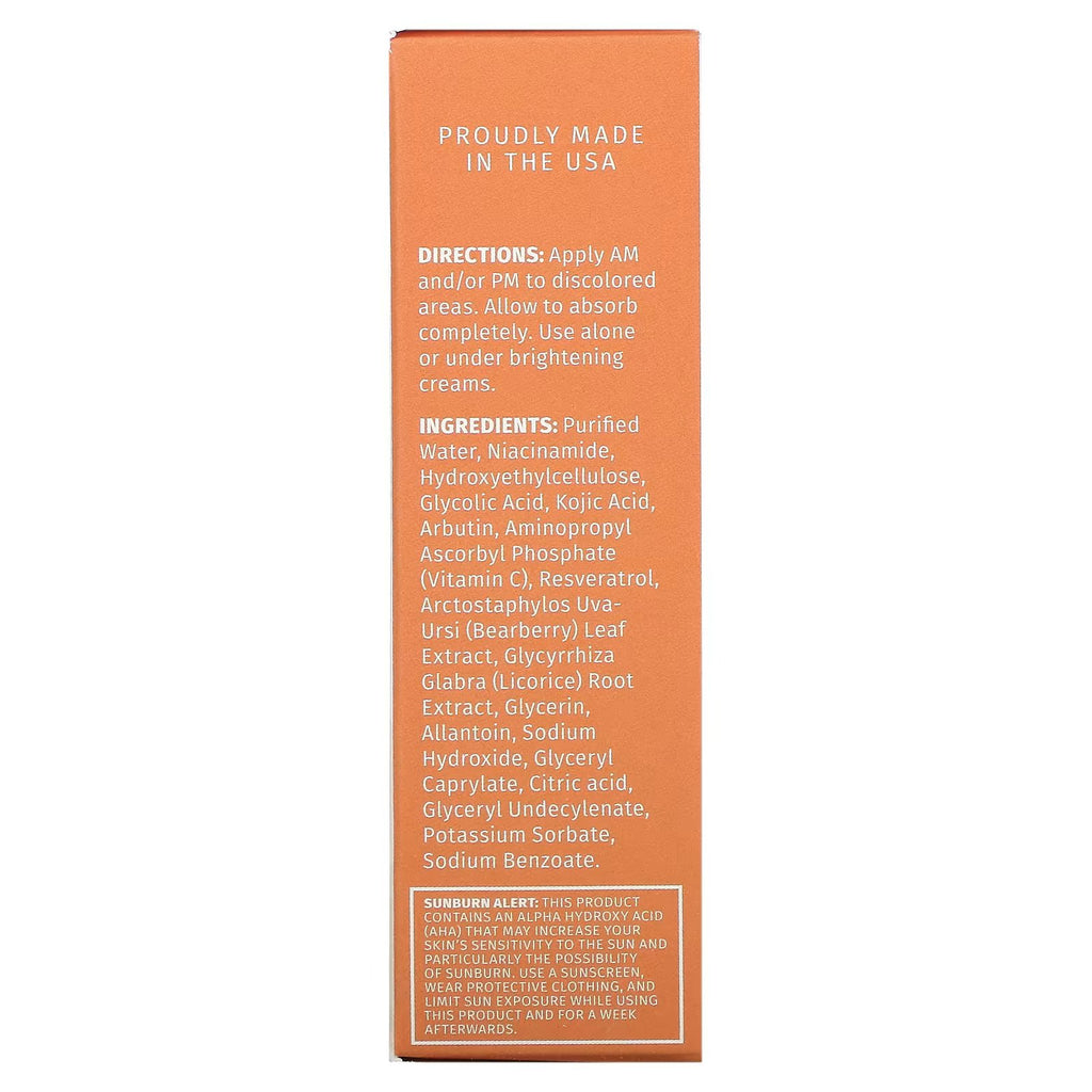 - This unique formula features (8) brighteners: 5% Niacinamide, 1% Glycolic Acid, 1% Kojic Acid, 1% Arbutin, Vitamin C, Resveratrol, Bearberry, and Licorice Root.