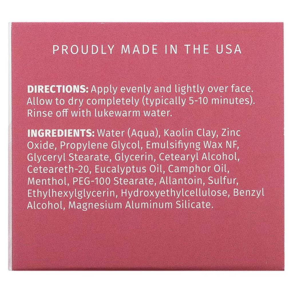 - This clay mask features Eucalyptus, Kaolin Clay, Zinc Oxide, Camphor Oil, & Sulfur.
