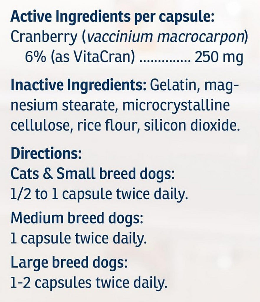 Cats and Small breed dogs: 1/2 to 1 capsule twice daily.