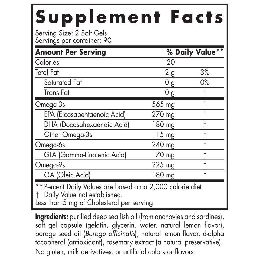ProEFA-3-6-9 is a non-concentrated formula that blends EPA and DHA from coldwater fish with GLA from borage oil. This omega-rich blend supports cardiovascular health, brain function, positive mood, as well as healthy joints, hair, skin, and nails.