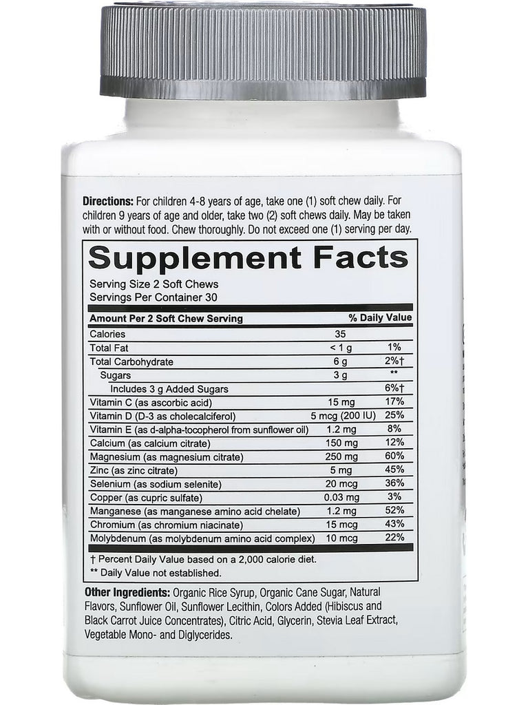 Premium vegetarian & non-GMO mineral supplement. Formulated with calcium and magnesium for bones, zinc for immunity and chromium to support energy metabolism - all in two delicious chews kids love.
