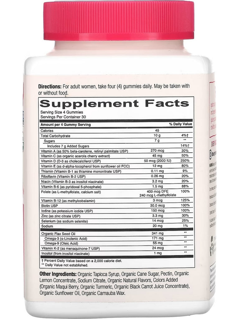 SmartyPants Organic Women's multivitamins are USDA Certi?ed Organic and Non-GMO Project Veri?ed with over 13 premium nutrients and omega-3 from organic ?axseed oil to support whole body health, all in one delicious serving.