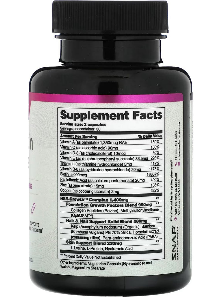 Snap Supplements, Hair, Skin, and Nails, 60 Capsules