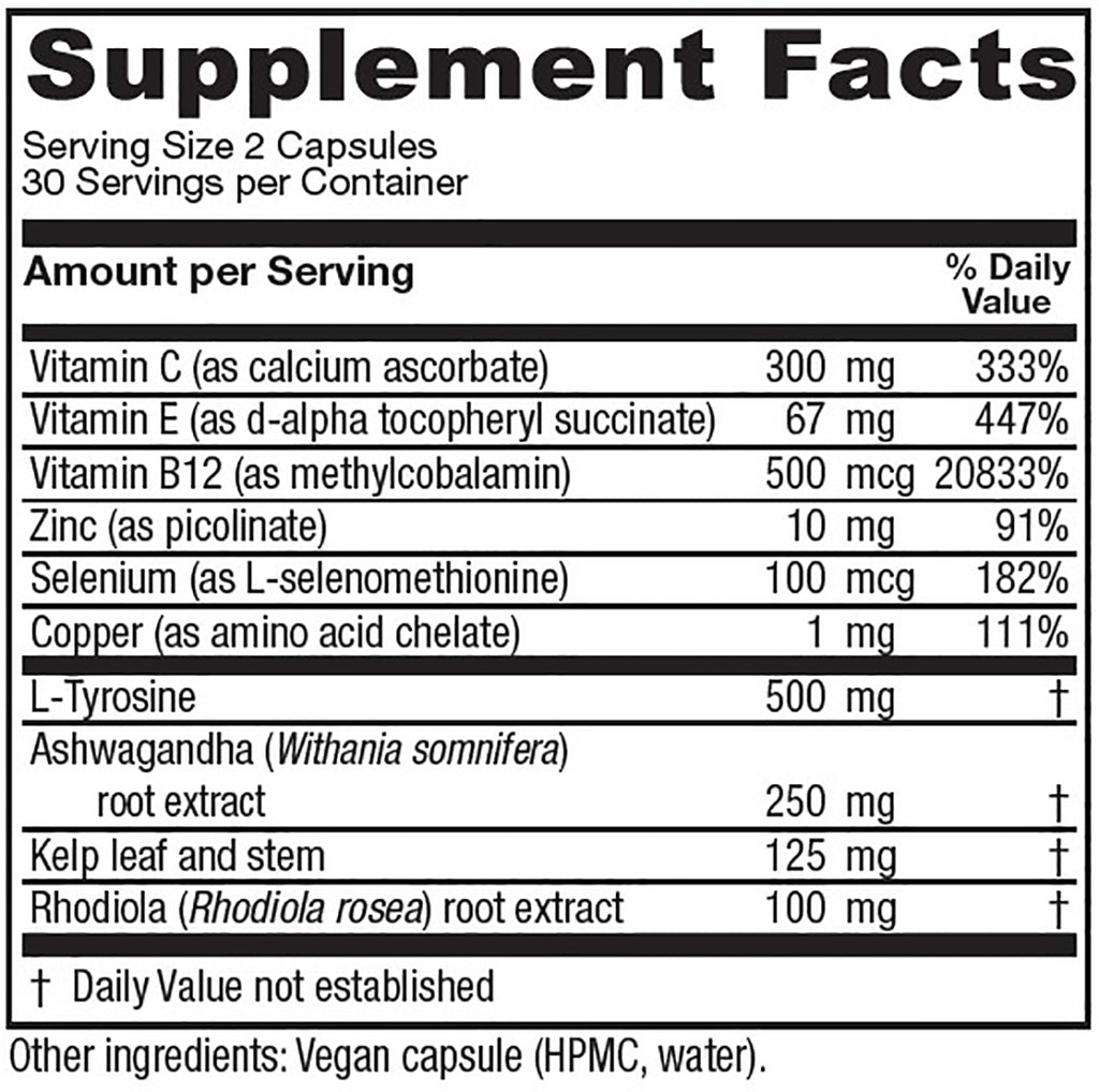 - Promotes the conversion of thyroid hormone with Zinc, Copper and Selenium