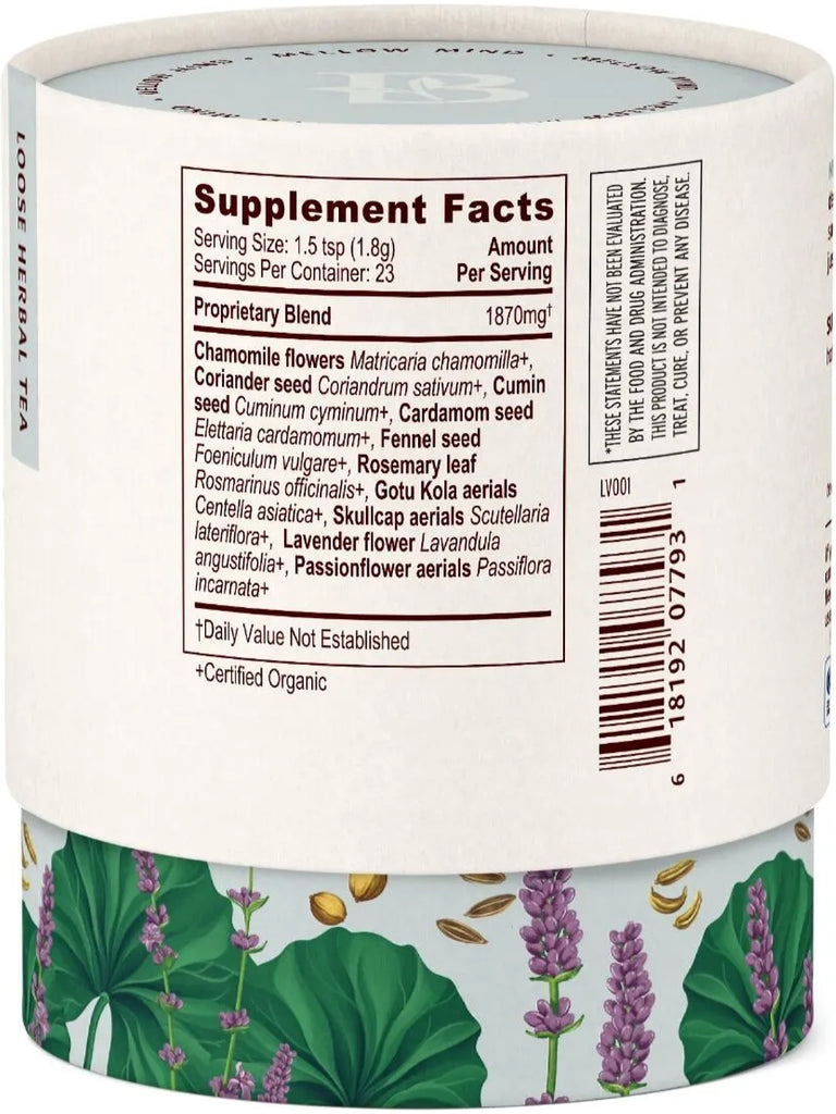 The longer you brew Mellow Mind, the more the flavor changes. To enjoy a subtler flavor and to taste more of the floral notes of lavender and chamomile, steep for 5–7 minutes. For a stronger brew and to unlock the flavors of the cardamom, cumin, coriander, and fennel seeds, steep for 10+ minutes. You can also enjoy Mellow Mind as a sun tea, a perfect way to savor the benefits during the summer months.