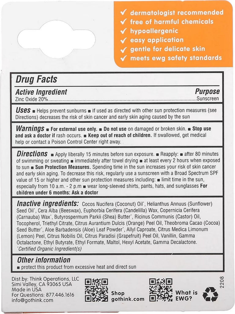 Think, Thinkbaby Zinc Oxide 20% Sunscreen SPF 30, 0.64 oz