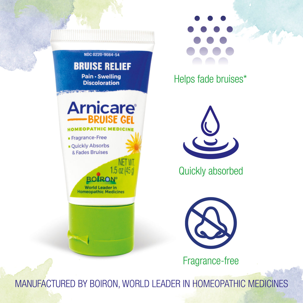 Say goodbye to tender and unsightly bruises with Arnicare Bruise Gel by Boiron. Made from fresh Arnica plants, it helps diminish discoloration while reducing pain and swelling. The gel cools and refreshes on contact and absorbs quickly into the skin without leaving any sticky or greasy residue. This formulation is 100% free of fragrances, parabens, and dyes for daily use as part of a skin care routine.
